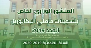 يهدف هذا المنشور الى تحديد القواعد العامة المطبقة في مجال التسجيل الأولي و توجيه حاملي شهادة البكالوريا بعنوان السنة الجامعية 2020/2019