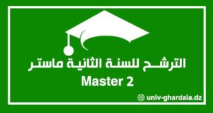 تفتح جامعة غرداية باب الترشح للسنة الثانية ماستر في التخصصات المفتوحة بالجامعة من 10 إلى 15 سبتمبر 2019 لفائدة: